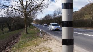 Auf den ersten Blick wirken die grau-schwarz gestreiften Säulen recht harmlos. Doch im Inneren des Aluminiumzylinders steckt viel Technik, die den Rasern das Leben schwer macht. „Der Apparat folgt dem Wagen“, erklärt Georges Goebel von der Straßenbauverwaltung. „Und der Erfassungsbereich beginnt bei 70 Metern Abstand“, fügt er hinzu.