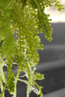 Le « caviar de la mer » nous vient aussi d'Asie. C'est ainsi qu’on appelle le raisin de la mer (Caulerpa lentillifera), une algue qui forme de petites perles remplies d'eau salée. En plus des protéines et des acides gras insaturés, il démarque par des métabolites secondaires comme les antioxydants. Consommé cru, il enrichit depuis longtemps la cuisine en Chine, au Japon et au Vietnam. Chez nous, il n’est cependant pas encore reconnu comme un aliment.