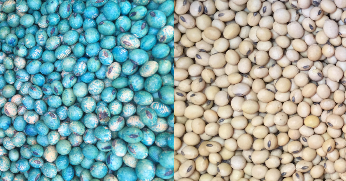 (left) treated and (right) untreated soybean seeds